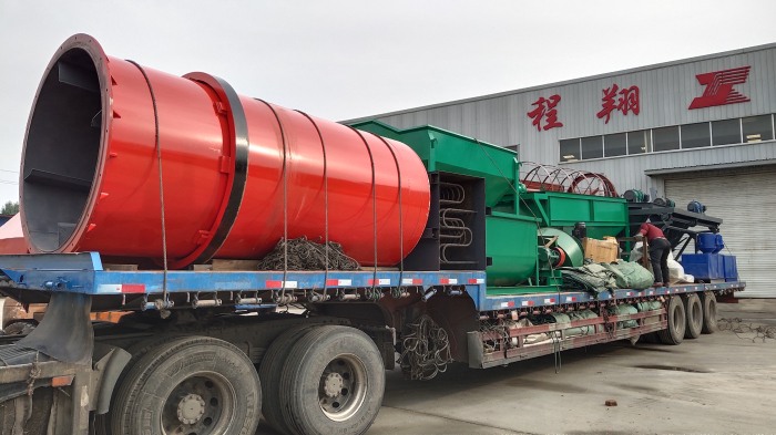 肥料生產(chǎn)設(shè)備廠家程翔重工本次發(fā)貨為年產(chǎn)5萬噸的豬糞有機肥加工成套設(shè)備,主要的有機肥生產(chǎn)設(shè)備有:液壓槽式翻堆機、鏟車喂料機、半濕物料粉碎機、臥式攪拌機、平模擠壓造粒機、滾筒烘干機、冷卻機、滾筒篩分機、自動包裝秤等等。由于肥料加工設(shè)備較多,因此分為兩車裝貨。