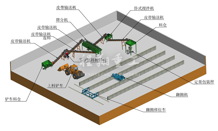 查看 > 13 2020/10本次發(fā)貨的設備是程翔重工是為江西某客戶定制的,簡單的年產(chǎn)1萬噸雞糞有機肥生產(chǎn)線,主要設備有:鏈式粉碎機、滾筒篩分機、濕法攪齒造粒機、鏟車喂料倉以及自動包裝秤。改雞糞生產(chǎn)線的工作流程為:發(fā)酵——粉碎——攪拌——造粒——篩分——包裝運輸1.發(fā)酵是第一步,畜禽糞便含有大量病蟲卵,需要進