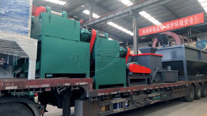查看 > 01 2021/03本次發(fā)貨的豬糞有機肥生產線主要設備有:鏟車喂料、臥式攪拌機、有機肥濕法造粒機、滾筒篩分機以及烘干設備。BB肥攪拌機作為拋圓設備使用