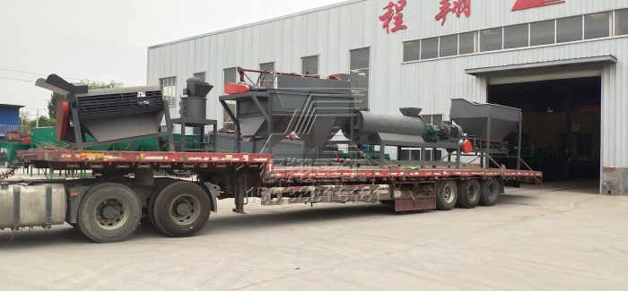 本次發(fā)貨的設(shè)備是程翔重工是為江西某客戶定制的,簡單的年產(chǎn)1萬噸雞糞有機(jī)肥生產(chǎn)線,主要設(shè)備有:鏈?zhǔn)椒鬯闄C(jī)、滾筒篩分機(jī)、濕法攪齒造粒機(jī)、鏟車喂料倉以及自動包裝秤。