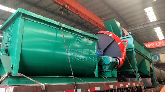 查看 > 01 2021/03本次發(fā)貨的豬糞有機(jī)肥生產(chǎn)線主要設(shè)備有:鏟車喂料、臥式攪拌機(jī)、有機(jī)肥濕法造粒機(jī)、滾筒篩分機(jī)以及烘干設(shè)備。BB肥攪拌機(jī)作為拋圓設(shè)備使用