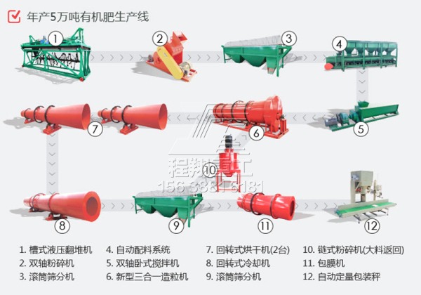 粒狀有機肥料生產(chǎn)線所需設備一般有: