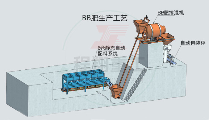 年產(chǎn)3萬(wàn)噸的BB肥摻混肥生產(chǎn)線工藝流程