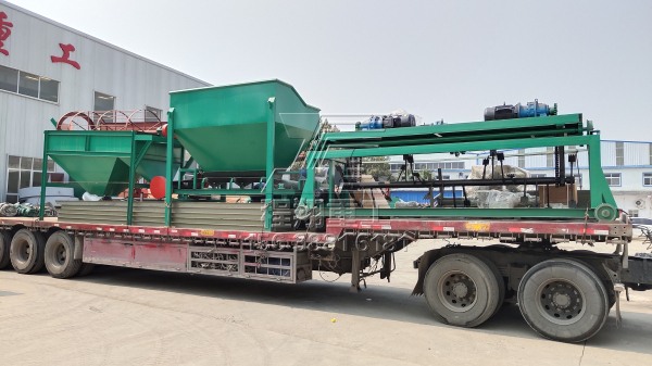 查看 > 20 2020/11由于該豬糞秸稈有機(jī)肥料生產(chǎn)線產(chǎn)量較大,因此分為多車裝置運(yùn)輸。主要的豬糞加工設(shè)備有:大型秸稈粉碎機(jī)、履帶式翻堆機(jī)、臥式攪拌機(jī)、新型三合一造粒機(jī)、不同型號的滾筒篩分機(jī)以及多個型號的烘干冷卻設(shè)備。滾筒烘干設(shè)備風(fēng)頭以及風(fēng)機(jī)安置熱風(fēng)爐以及冷卻設(shè)備多個烘干冷卻設(shè)備履帶式翻堆機(jī)以及大型秸稈粉碎機(jī)二次烘干設(shè)備滾筒篩分機(jī)以及鏟車喂料倉本次豬糞秸稈有機(jī)肥料生產(chǎn)線工藝設(shè)計流程為:利用大型秸稈粉碎機(jī)將稻草秸稈等粉碎均勻,