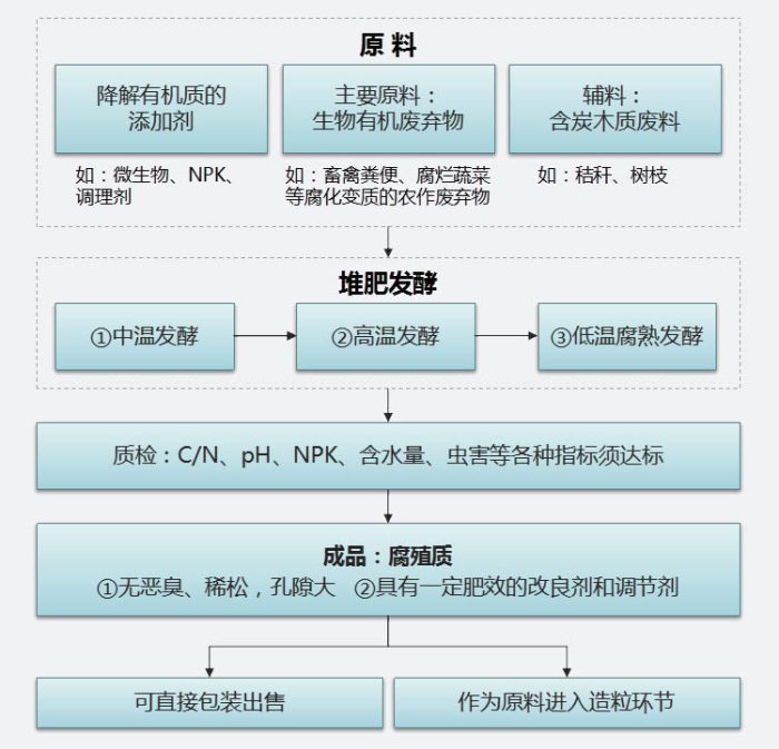 將攪拌好的雞糞、以及輔料堆砌在地面或者發(fā)酵槽中,配料堆成寬1.5米~2米、下0.8米~1米的長條堆,撒上發(fā)酵菌劑除臭、升溫,或者可以采用將發(fā)酵菌劑與一些殼糠、粉渣等輔料,充分混合之后,再進行好氧發(fā)酵堆造。切記:將配好的混雜料喂進臥式攪拌機中舉行攪拌,攪拌一定要勻、要透,沒有留死塊。堆造2~3天后料堆的溫度可達60攝氏度~80攝氏度,殺死大腸桿菌、蟲卵等病蟲害;之后雞糞的臭味逐漸消除了;堆肥變得松散