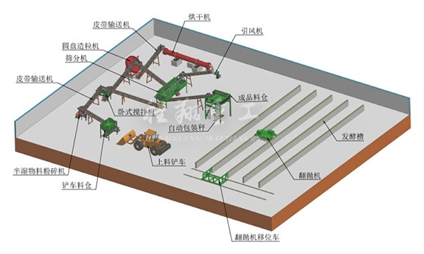 (2)傳統(tǒng)堆肥或倉式發(fā)酵該技術(shù)發(fā)酵周期長,需3~6個月。為了滿足現(xiàn)在環(huán)保生產(chǎn)的要求:無臭味、無污染,則需要添加有機肥廠除臭設(shè)備,想要快速出肥,則需要借助有機肥發(fā)酵設(shè)備,例如有機肥翻堆機。