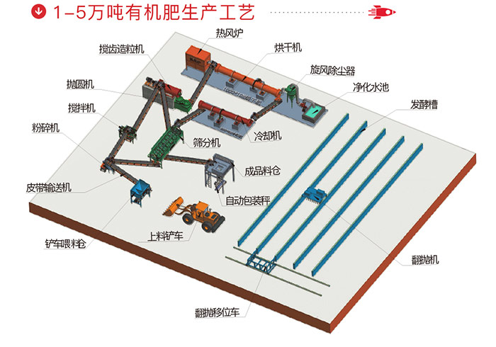 年產(chǎn)1~5萬噸的標(biāo)準(zhǔn)有機(jī)肥生產(chǎn)線配套設(shè)備現(xiàn)場規(guī)劃圖
