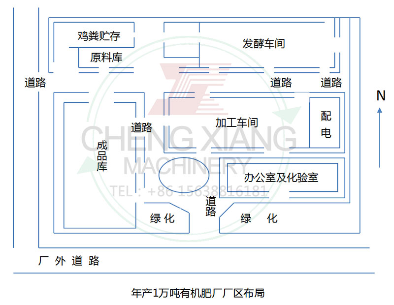 有機(jī)肥廠的廠區(qū)布局一般包括:職工生活區(qū)(辦公區(qū))、設(shè)備存放區(qū)、原料倉庫、發(fā)酵車間、半成品存放區(qū)、加工車間、成品倉庫、辦公區(qū)、種植示范區(qū)