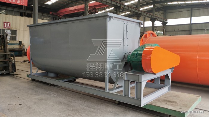3、混合、攪拌:這里主要借助臥式攪拌機(jī)進(jìn)行混合,將發(fā)酵好、粉碎均勻的有機(jī)物料與復(fù)合肥料充分混合,3-5分鐘攪拌一倉,攪拌均勻之后由輸送機(jī)直接輸送至肥料造粒機(jī)當(dāng)中進(jìn)行造粒環(huán)節(jié)。
