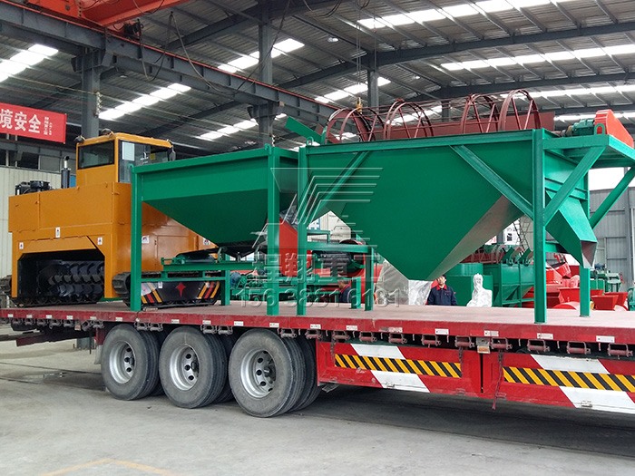 查看 > 01 2021/03本次發(fā)貨的豬糞有機(jī)肥生產(chǎn)線主要設(shè)備有:鏟車喂料、臥式攪拌機(jī)、有機(jī)肥濕法造粒機(jī)、滾筒篩分機(jī)以及烘干設(shè)備。BB肥攪拌機(jī)作為拋圓設(shè)備使用