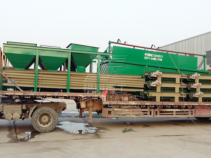 查看 > 20 2020/11由于該豬糞秸稈有機(jī)肥料生產(chǎn)線產(chǎn)量較大,因此分為多車裝置運(yùn)輸。主要的豬糞加工設(shè)備有:大型秸稈粉碎機(jī)、履帶式翻堆機(jī)、臥式攪拌機(jī)、新型三合一造粒機(jī)、不同型號(hào)的滾筒篩分機(jī)以及多個(gè)型號(hào)的烘干冷卻設(shè)備。滾筒烘干設(shè)備風(fēng)頭以及風(fēng)機(jī)安置熱風(fēng)爐以及冷卻設(shè)備多個(gè)烘干冷卻設(shè)備履帶式翻堆機(jī)以及大型秸稈粉碎機(jī)二次烘干設(shè)備滾筒篩分機(jī)以及鏟車喂料倉(cāng)本次豬糞秸稈有機(jī)肥料生產(chǎn)線工藝設(shè)計(jì)流程為:利用大型秸稈粉碎機(jī)將稻草秸稈等粉碎均勻,