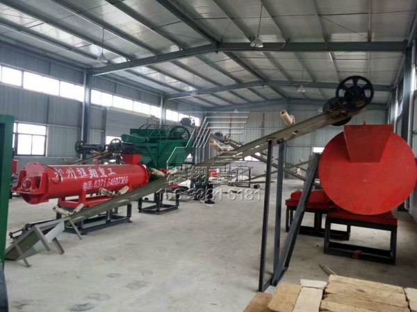 查看 > 01 2021/03本次發(fā)貨的豬糞有機(jī)肥生產(chǎn)線主要設(shè)備有:鏟車喂料、臥式攪拌機(jī)、有機(jī)肥濕法造粒機(jī)、滾筒篩分機(jī)以及烘干設(shè)備。BB肥攪拌機(jī)作為拋圓設(shè)備使用