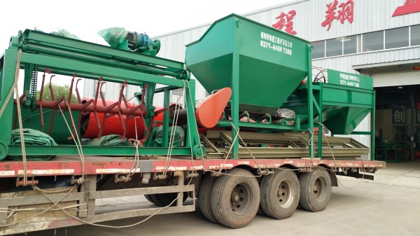 查看 > 20 2020/11由于該豬糞秸稈有機(jī)肥料生產(chǎn)線產(chǎn)量較大,因此分為多車裝置運(yùn)輸。主要的豬糞加工設(shè)備有:大型秸稈粉碎機(jī)、履帶式翻堆機(jī)、臥式攪拌機(jī)、新型三合一造粒機(jī)、不同型號的滾筒篩分機(jī)以及多個型號的烘干冷卻設(shè)備。滾筒烘干設(shè)備風(fēng)頭以及風(fēng)機(jī)安置熱風(fēng)爐以及冷卻設(shè)備多個烘干冷卻設(shè)備履帶式翻堆機(jī)以及大型秸稈粉碎機(jī)二次烘干設(shè)備滾筒篩分機(jī)以及鏟車喂料倉本次豬糞秸稈有機(jī)肥料生產(chǎn)線工藝設(shè)計流程為:利用大型秸稈粉碎機(jī)將稻草秸稈等粉碎均勻,