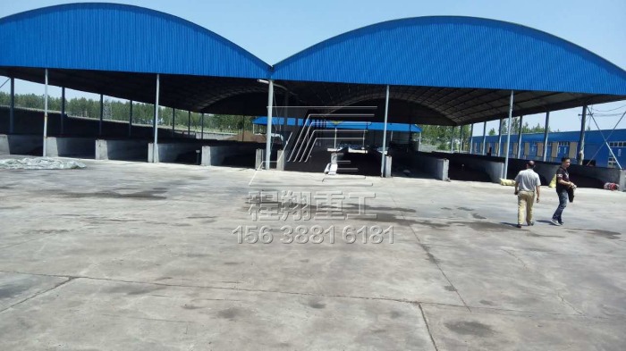 考慮到牛糞的物料特性,為節(jié)約投資,南方地區(qū)也可以用遮雨棚代替太陽(yáng)能堆肥車間。