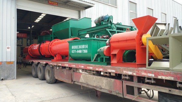 年產(chǎn)1萬噸的雞糞有機肥加工設(shè)備發(fā)貨現(xiàn)場